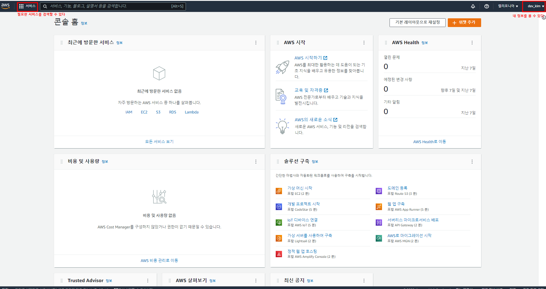 1. AWS Management Console에 IAM 사용자 또는 루트 사용자로 로그인