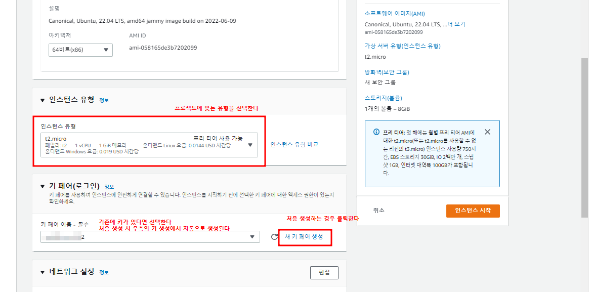 - 새 키 페어 생성을 클릭하면 팝업창이 나타난다