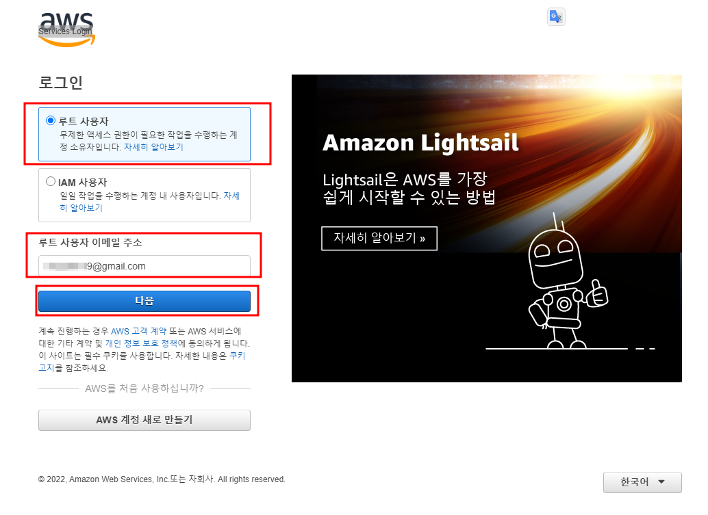 - AWS 계정을 생성하는 데 사용되는 이메일 주소와 루트 사용자의 암호를 준비한다