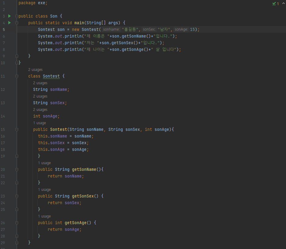 - 동일한 이름의 인스턴스 변수와 매개변수가 있다면 구분이 어렵기 때문에 이런 경우 this 키워드를 사용하여 변수의 성격을 확인시켜 준다