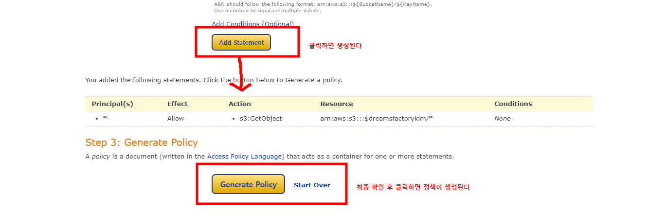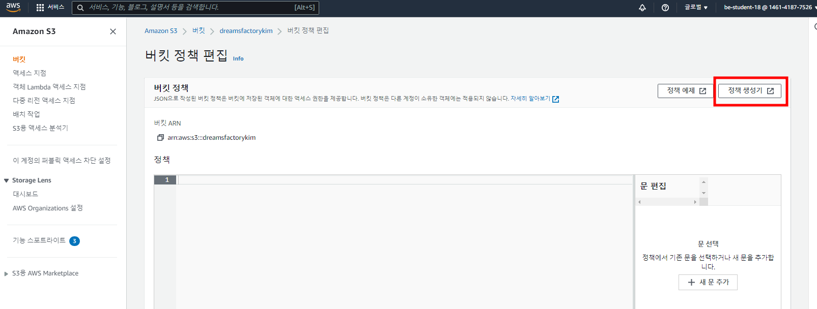 - 여기서 버킷 정책을 생성한다