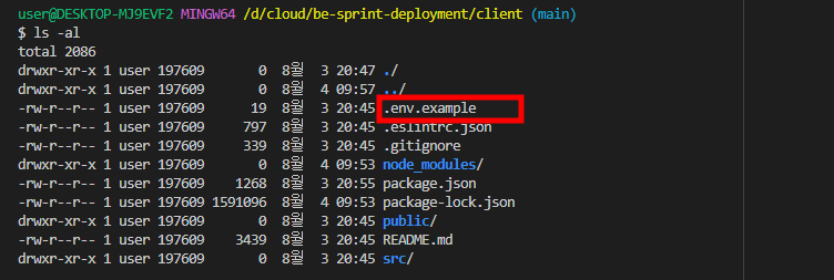 - 해당 파일(.env 혹은 .env.example) client 디렉토리 내부에 위치하며, CLI에서 ls -a 혹은 ls -al 명령어로 확인할 수 있다