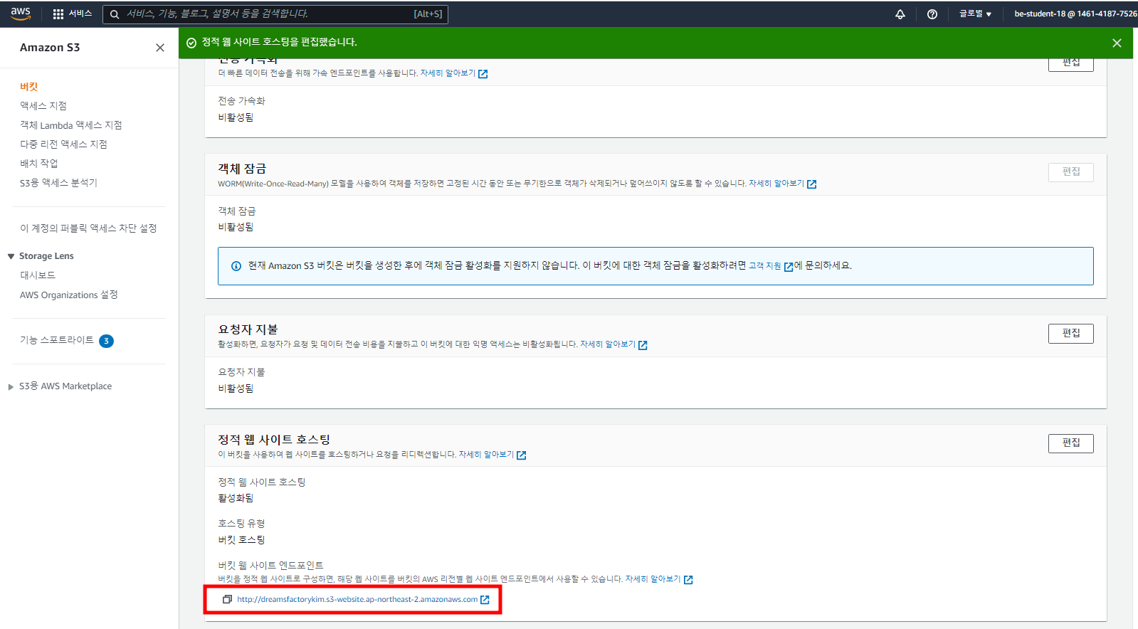 - 예전에 존재하지 않았던 버킷 웹 사이트 엔드 포인트가 생성되었다