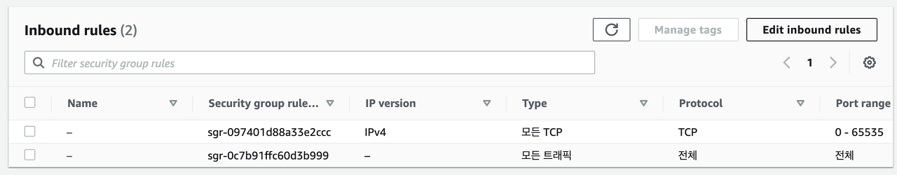 - 우측 하단에 Edit inbound rules 버튼 클릭