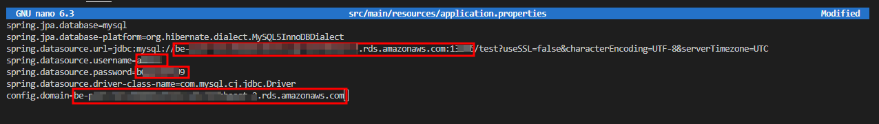 - application.properties 파일을 nano 에디터를 사용하여 수정한다