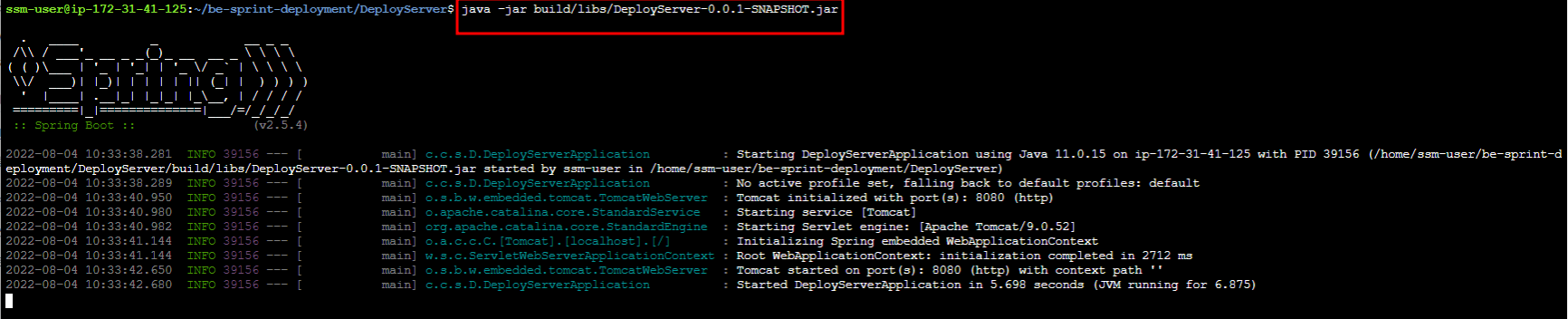 - java -jar build/libs/DeployServer-0.0.1-SNAPSHOT.jar 명령어를 입력하여 서버를 재실행한다
