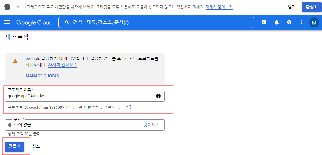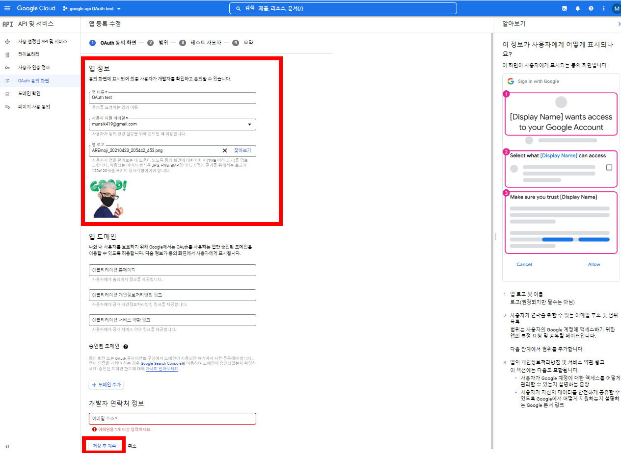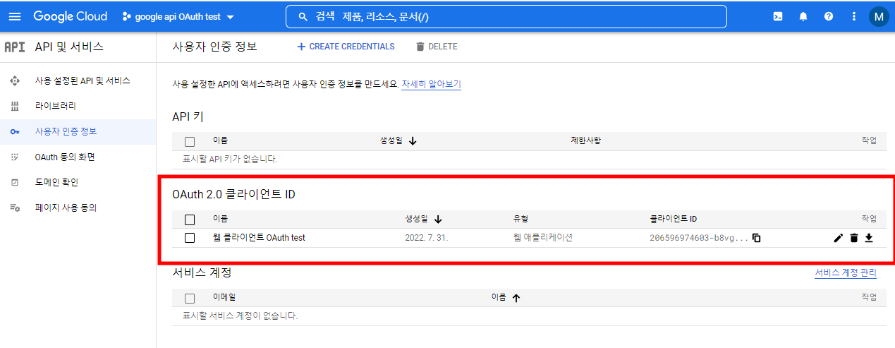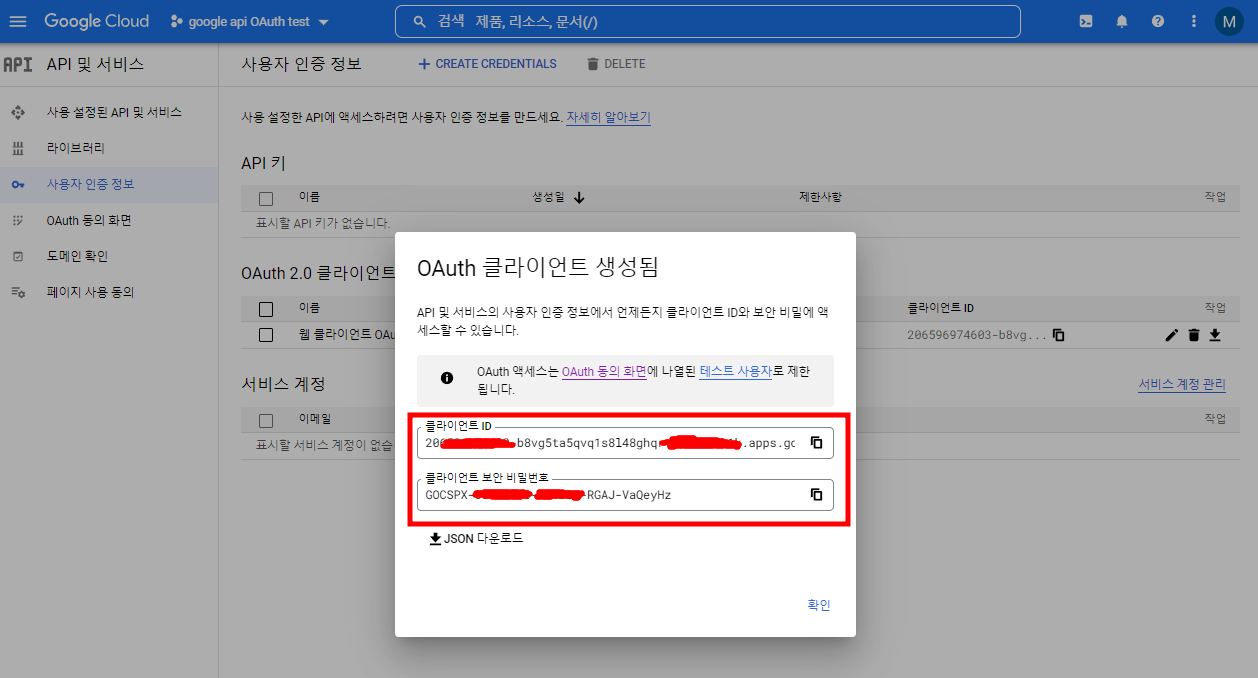 - clientID와 clientSecret은 구글 API console에서 발급받은 API Key를 입력한다