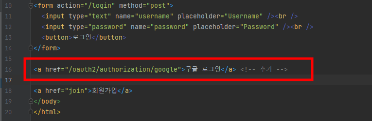 <a href="/oauth2/authorization/google">구글 로그인</a> <!-- 추가 -->