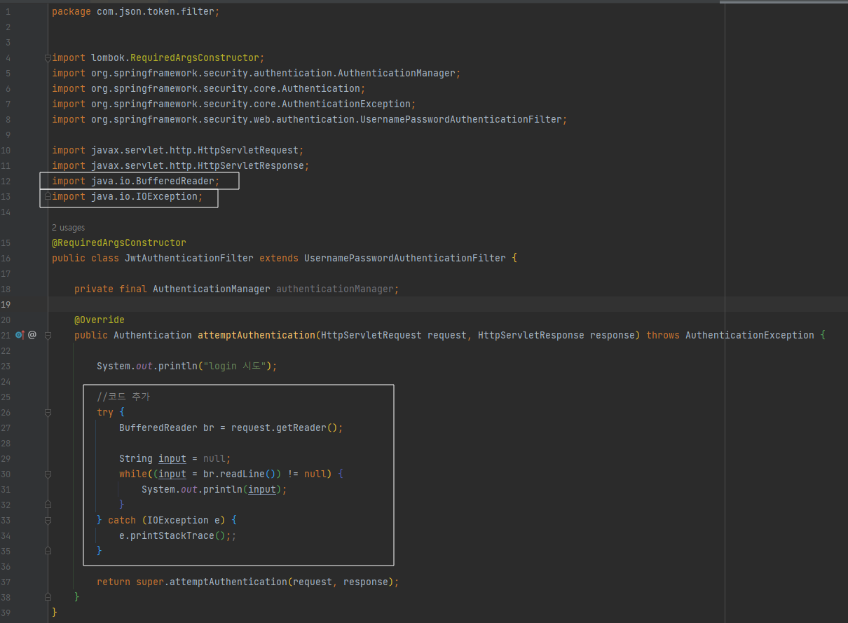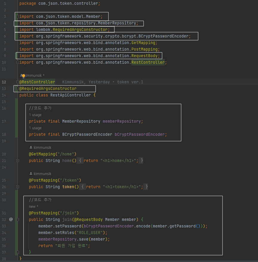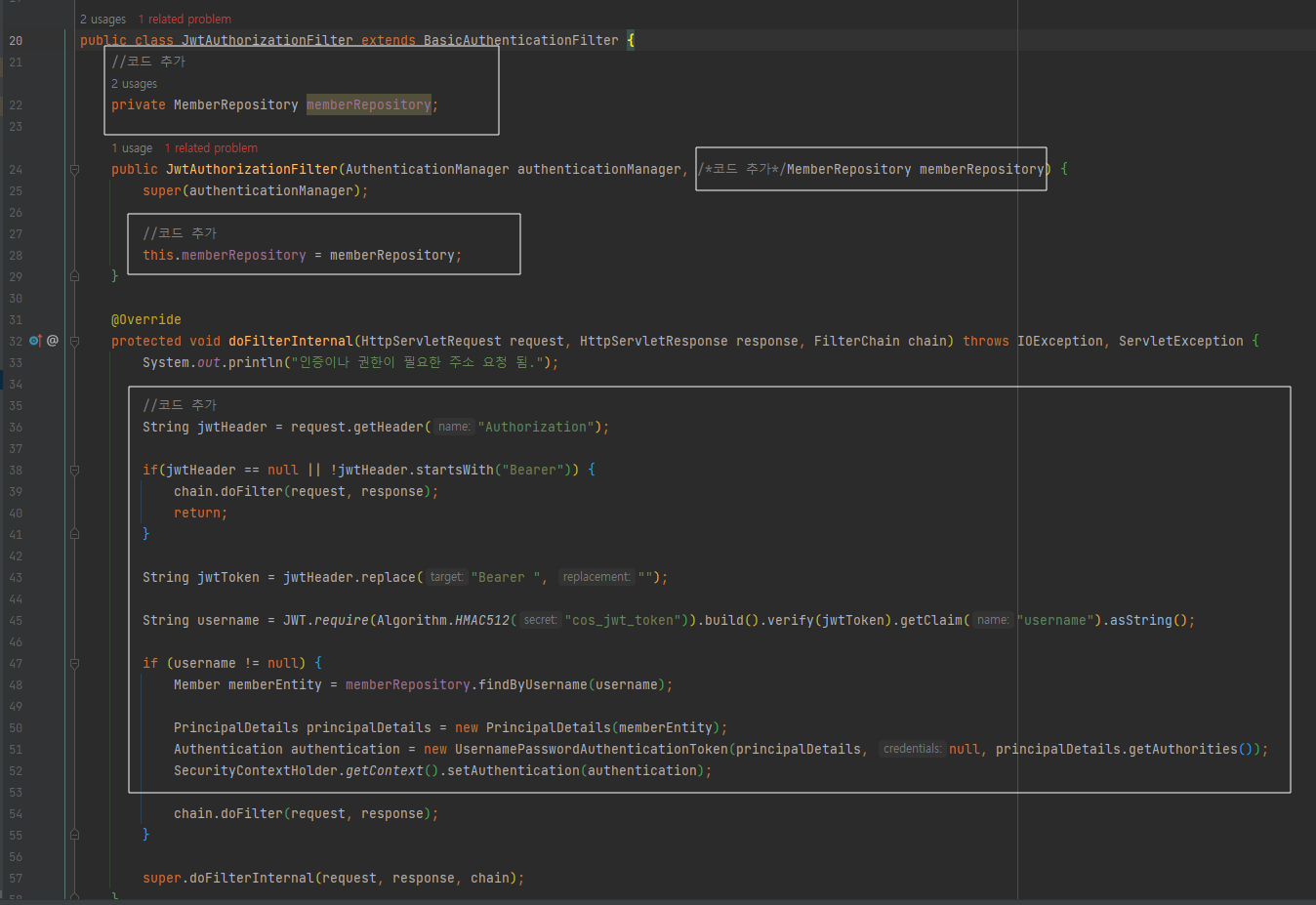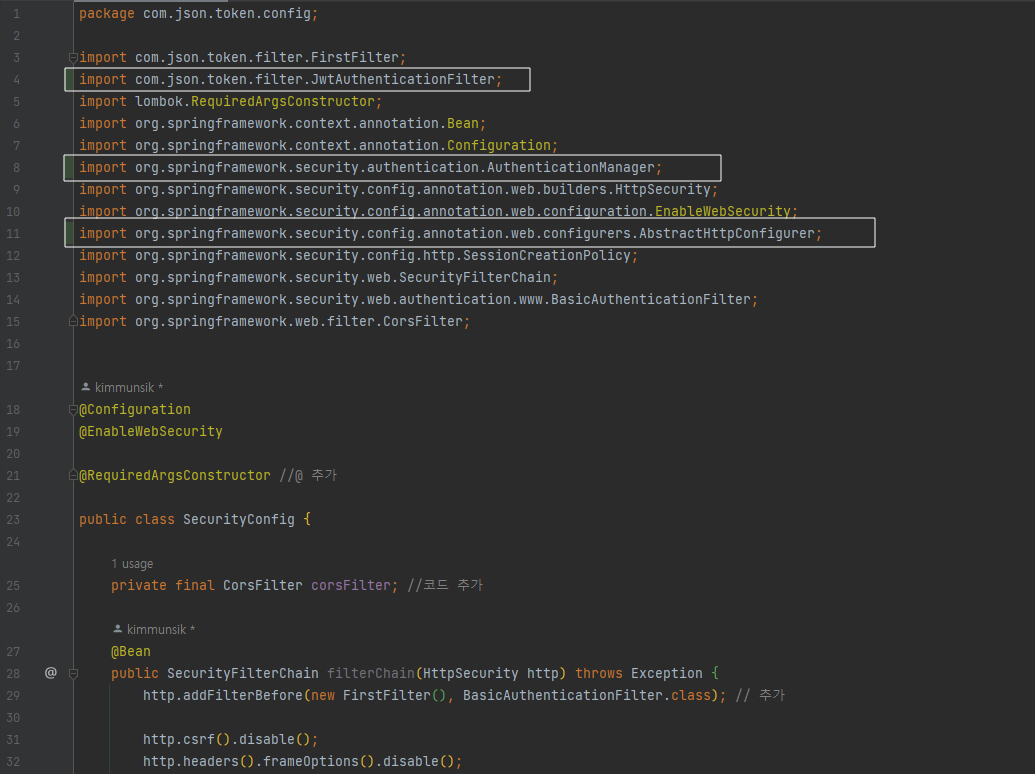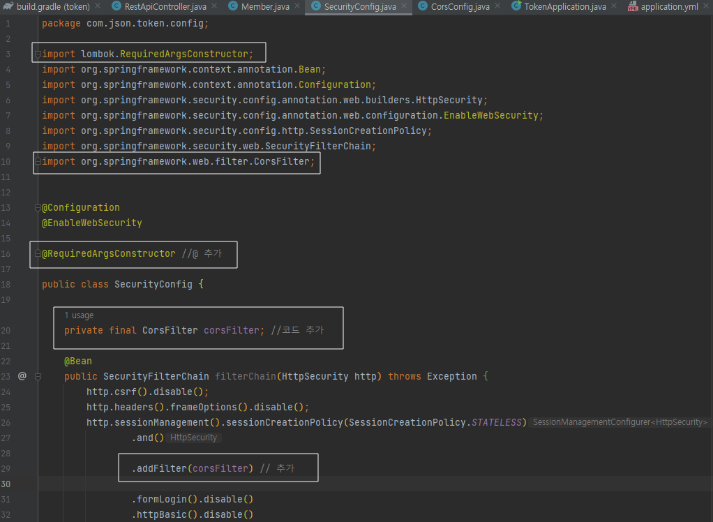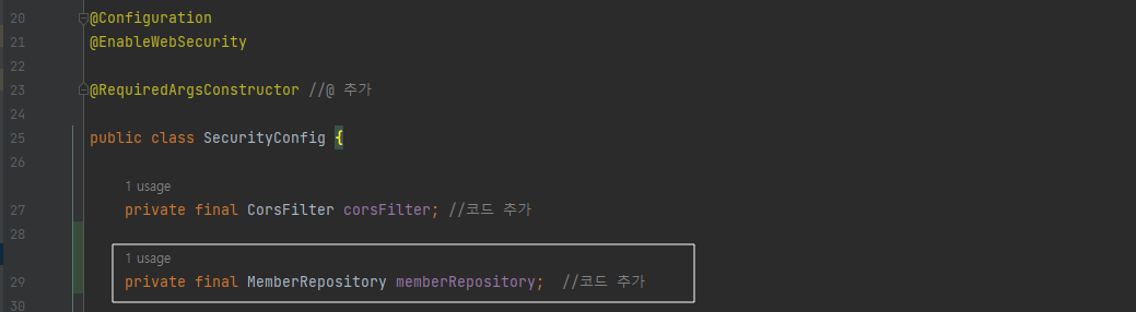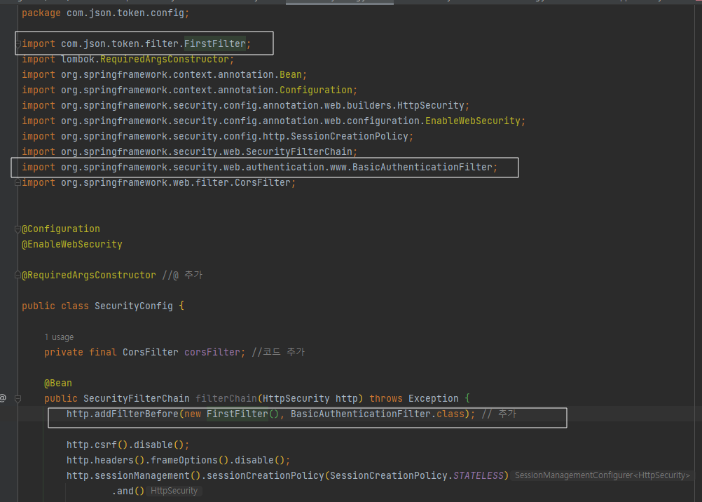 3) SecurityConfig에 위 코드들을 적용해 주는 코드를 추가한다