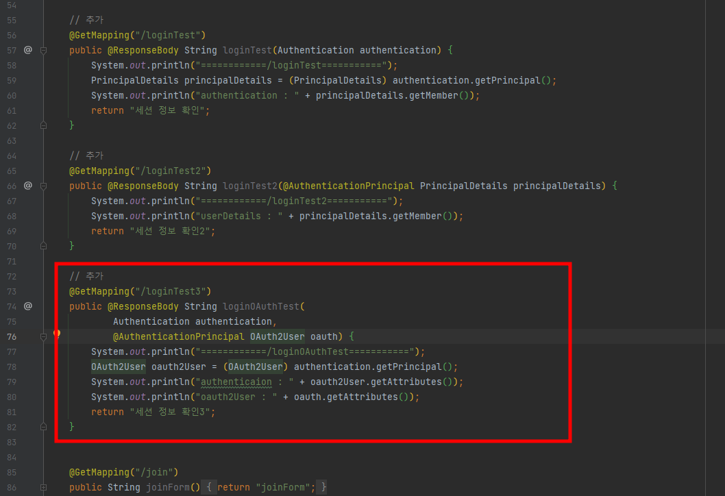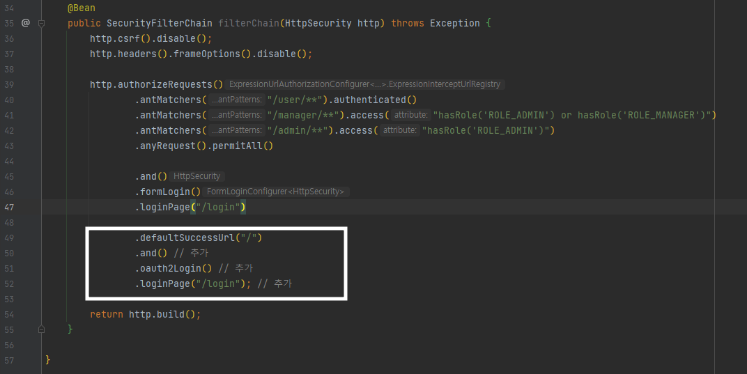 - OAuth2 로그인 정보를 가져오기 위한 코드를 추가한다