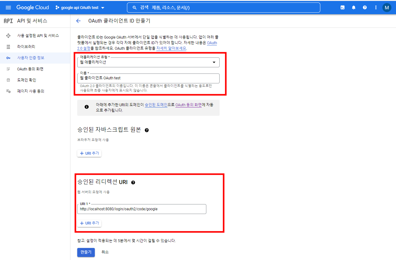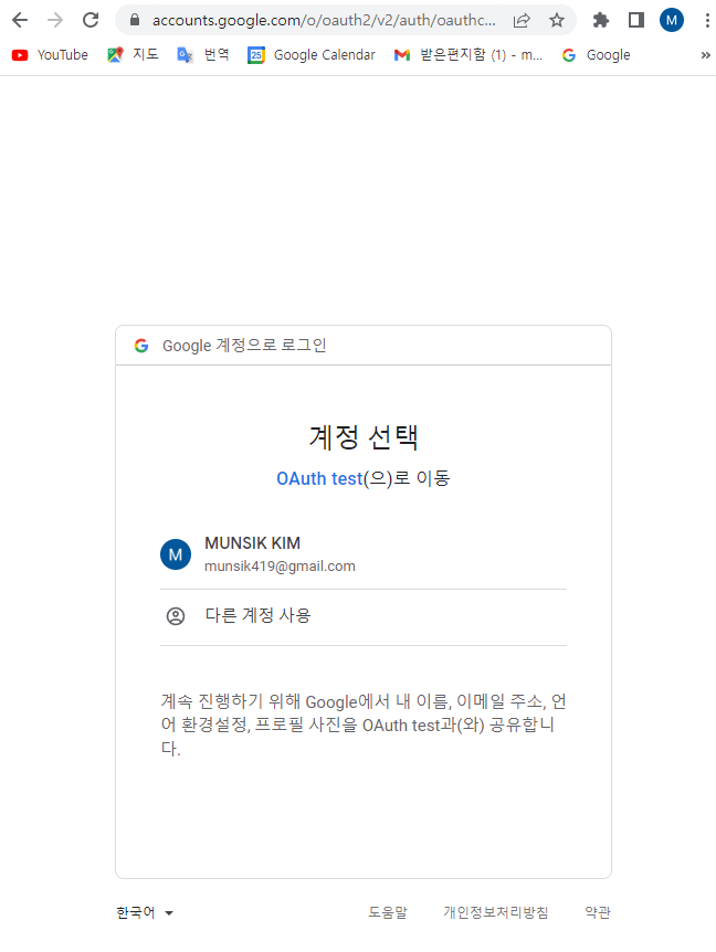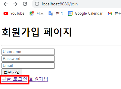 - localhost:8080/login 으로 접속하여 '구글로그인'을 선택한다