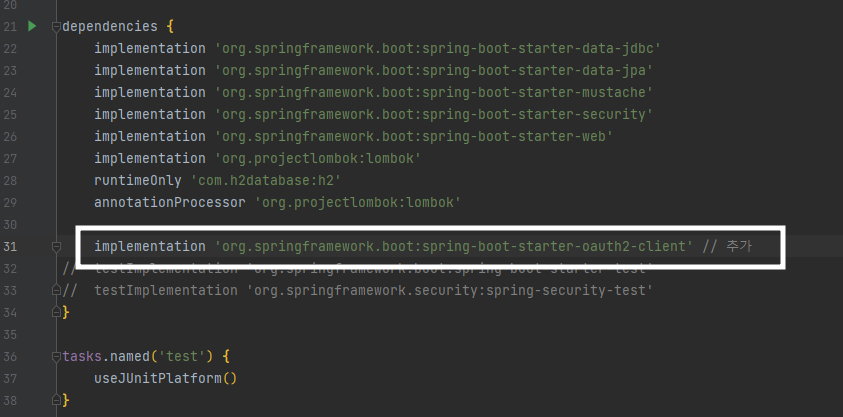 implementation 'org.springframework.boot:spring-boot-starter-oauth2-client' // 추가