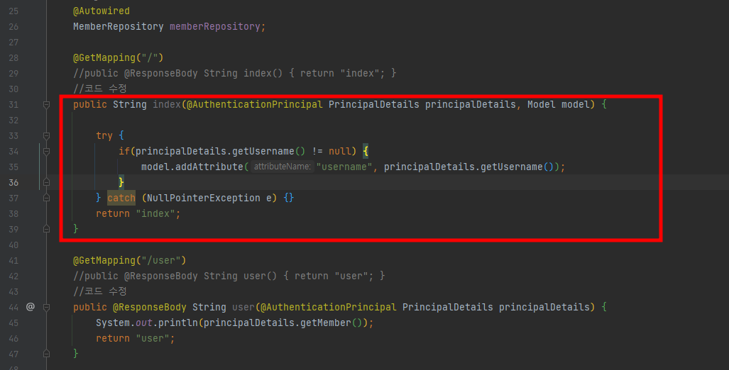 - 애너테이션을 통해 회원정보를 가져올 수 있다.