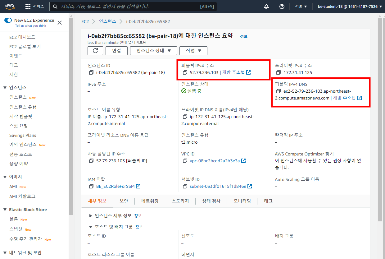 - 퍼블릭 IPv4 주소와 퍼블릭 IPv4 DNS는 형태만 다를 뿐 같은 주소이다
