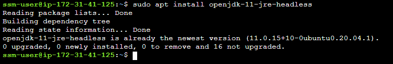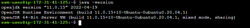 - 설치가 완료되면 java -version 명령으로 java 라이브러리 버젼과 완료여부를 확인한다