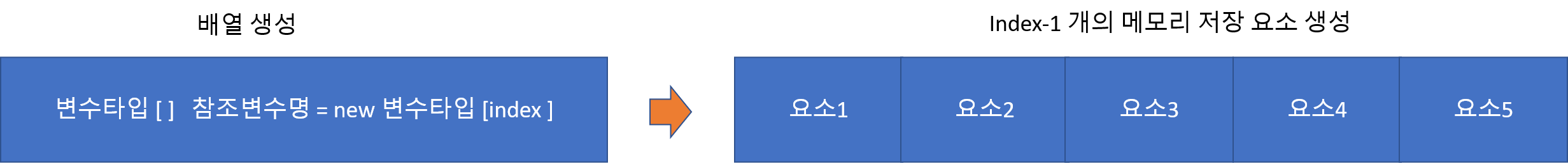 - '참조변수 = new 타입[index]' 의 형태로 생성한다