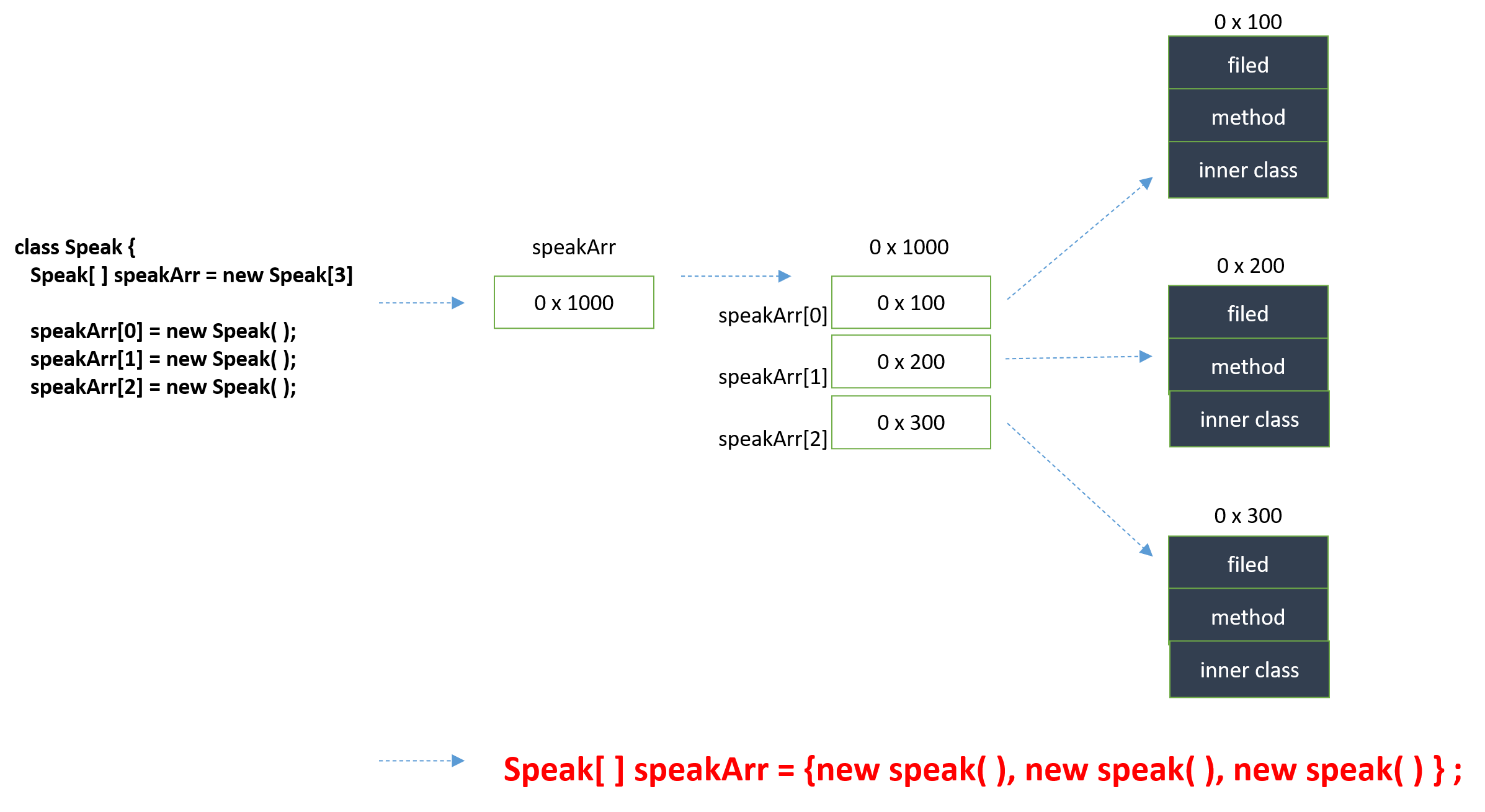 Speak speak1, speak2, speak3; // Spaea[ ] speakArr = new Speak[3];