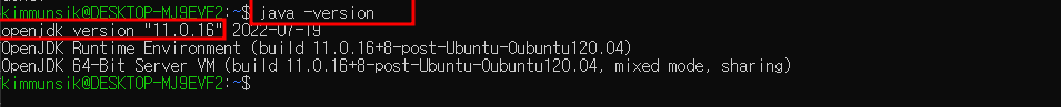 - 설치 과정 완료 후 java -version 명령어를 입력하여 java 라이브러리가 설치되었는지 확인한다