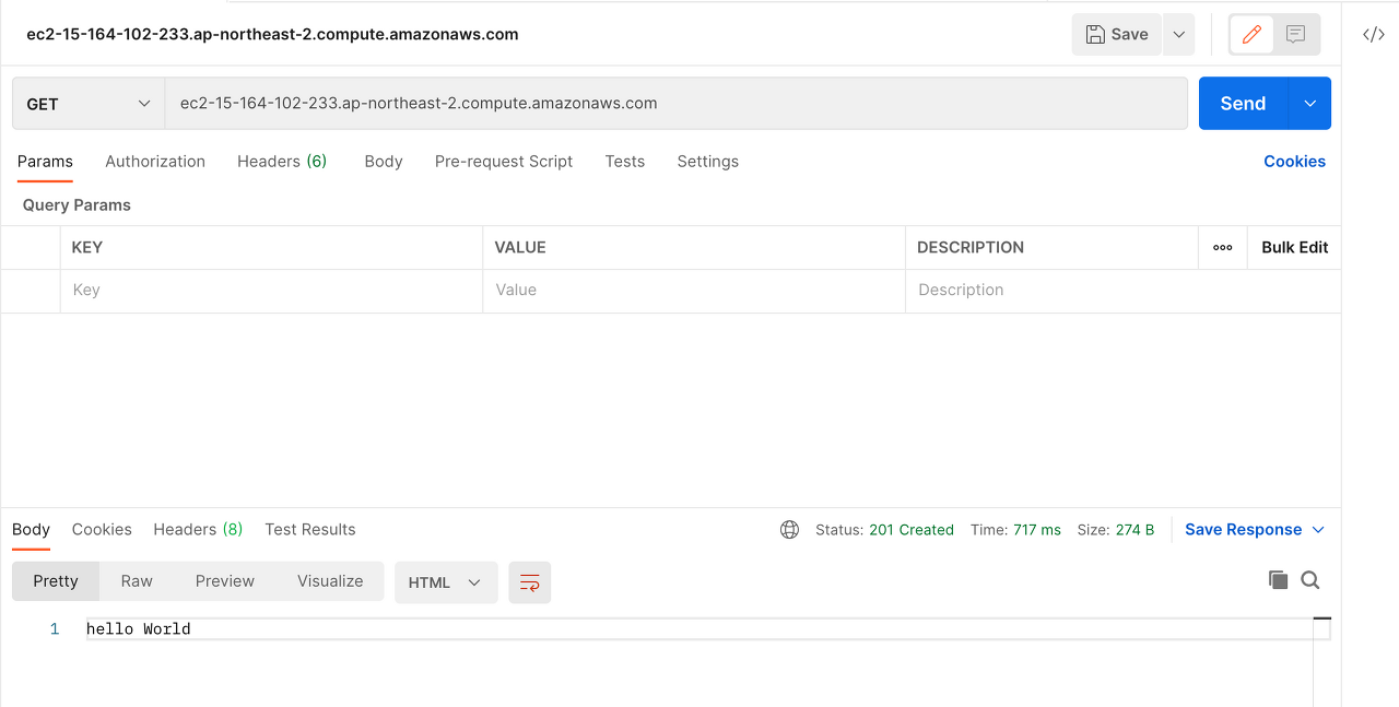- 생성한 EC2 인스턴스의 IP 주소를 이용하여 테스트 진행한다