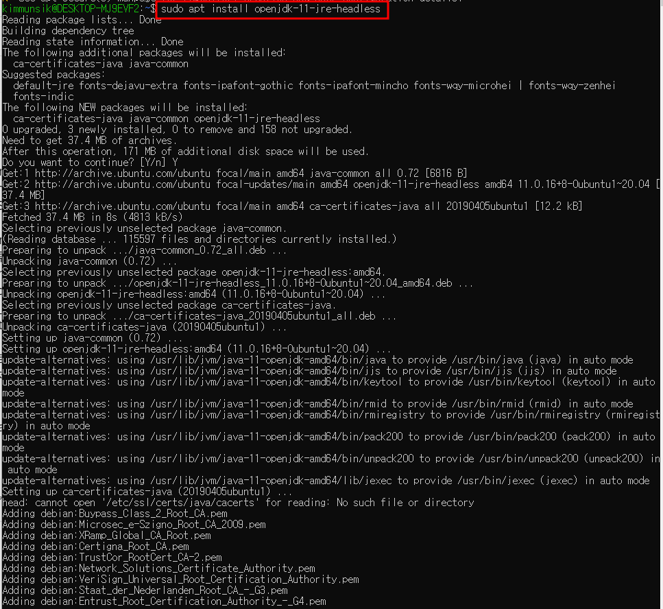- ubuntu 업데이트 과정이 끝나면 java를 설치한다