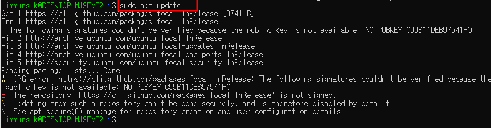 - 패키지 매니저가 관리하는 패키지의 정보를 최신 상태로 업데이트하기 위해서 아래 명령어를 터미널에 입력합니다.