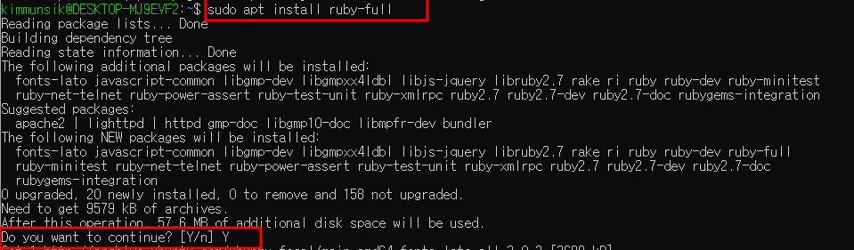 - 'Do you want to continue?' 확인창이 나올경우 "Y"를 입력한다