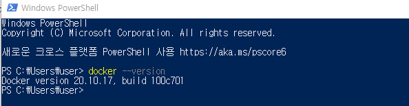 - 설치 후 터미널에서 Docker 설치 여부 및 버젼을 확인 한다