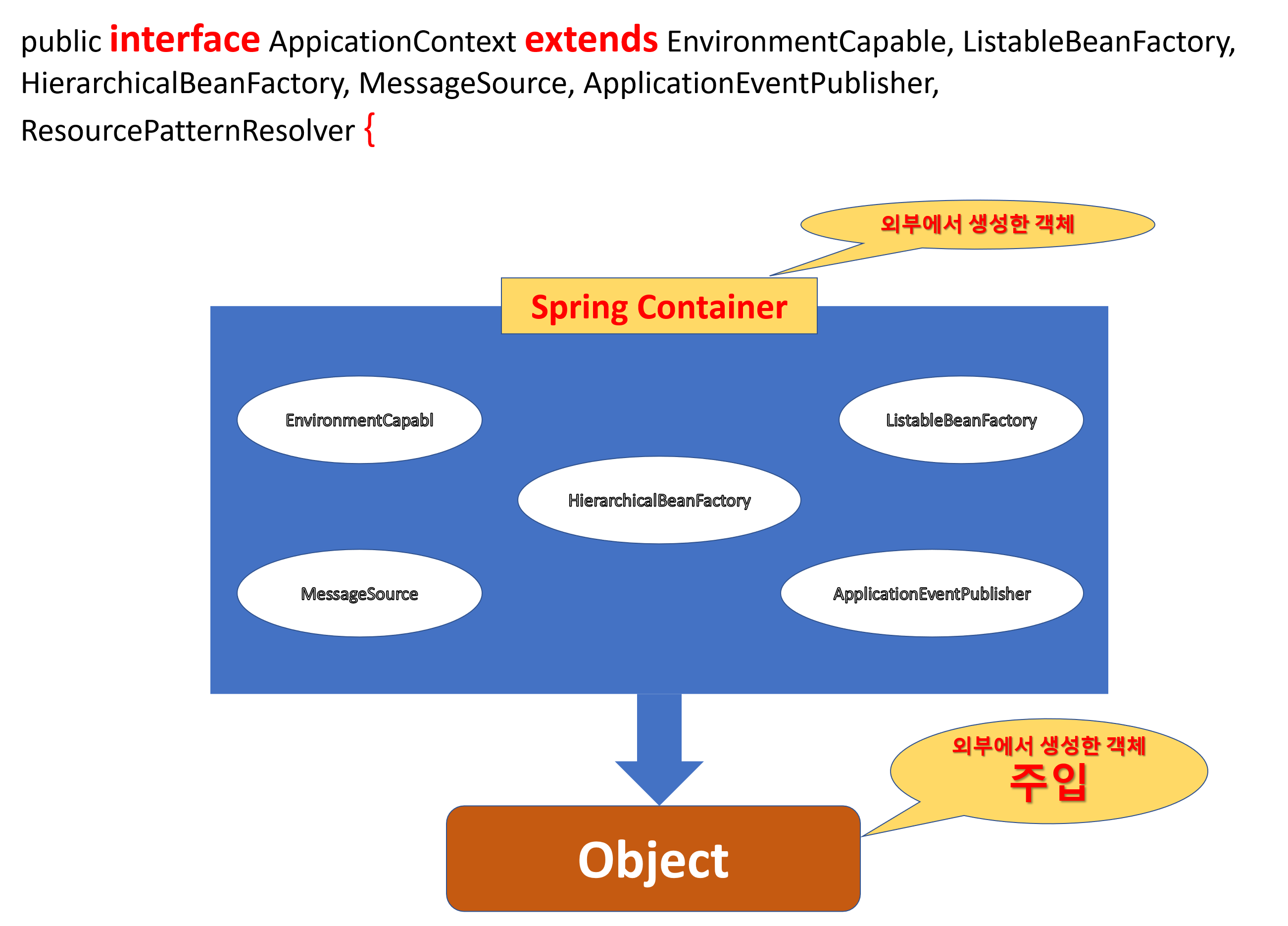 - 스프링 컨테이너의 최상위 인터페이스이다